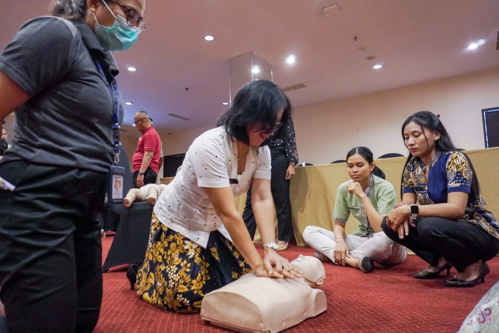 To ensure comprehensive and high-quality instruction, the session was led by a professional medical team from Siloam Hospital Denpasar. Participants engaged in interactive learning sessions covering the management of minor injuries, unconsciousness, and immediate response procedures during unexpected emergencies. Hands-on practice and simulation exercises further strengthened participants’ confidence and competence.